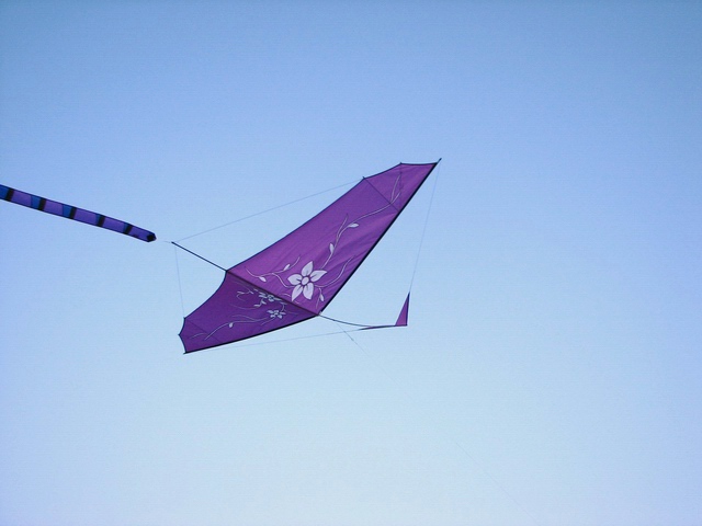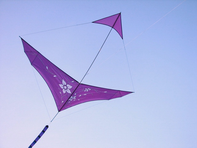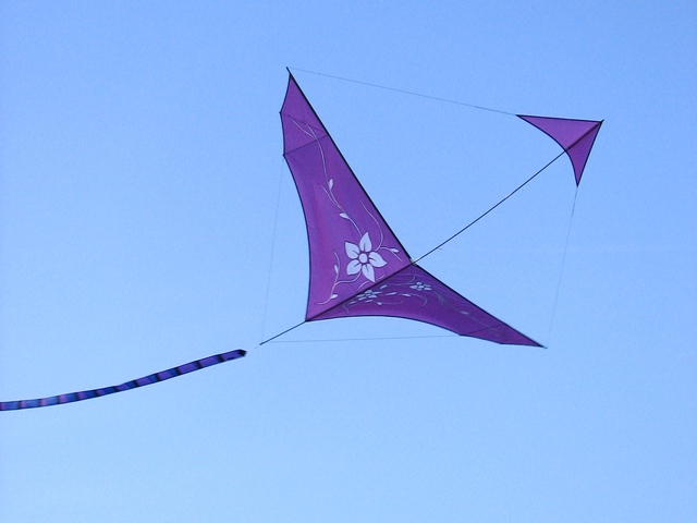 Die geschwungene Kontur passt sehr schön zu diesem Drachen und verleiht ihm sogar recht gute Flugeigenschaften, wobei der Drachen mit seinen 3,30 Meter Spannweite zwischen 1 und 3 Bft Wind in seinem Element ist und dabei nur geringe Zugkräfte entwickelt.