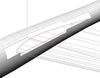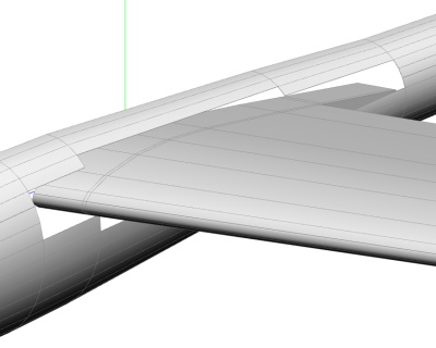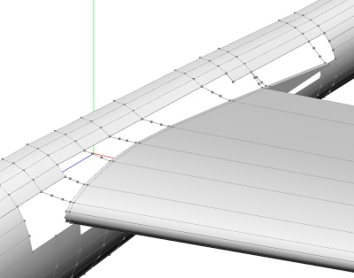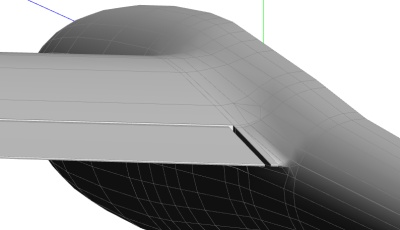 Als nächstes werden in den Flügel ein bis zwei Polygonlinien nahe des Rumpfes eingezogen. Sie bilden später die Begrenzung der Verrundung.