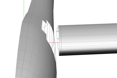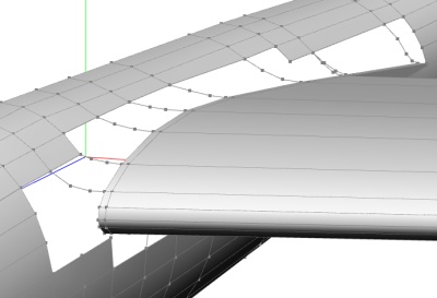 Als nächstes löschen wir einfach die Polygone des Flügels die rumpfseitig über die Polygonreihen hinausragen, die wir anfangs in den Flügel eingezogen haben.