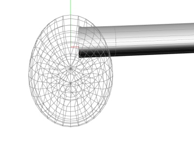 Der entscheidende Trick ist jetzt, daß man in den Rumpf noch genügend viele Polygonreihen (Querschnitte) einzieht, damit grob jedem Punkt des Flügels eine Polygonreihe im Rumpf in etwa gegenüber steht. Das muß nicht sonderlich genau gemacht werden. In der Seitenansicht kann man am besten sehen, wo diese Polygonreihen liegen sollten und sie auch gleich in den Rumpf einziehen.